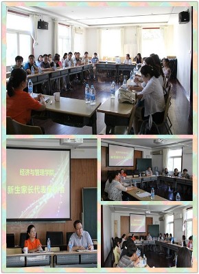 2014年9月3日下午,经济与管理学院2014级新生家长座谈会在学院楼322会议室顺利举办。经济与管理学院副院长李珍晖、各专业负责人、学院辅导员以及各专业新生家长代表出席了此次座谈会,座谈会由学院党委副书记毛建国主持。