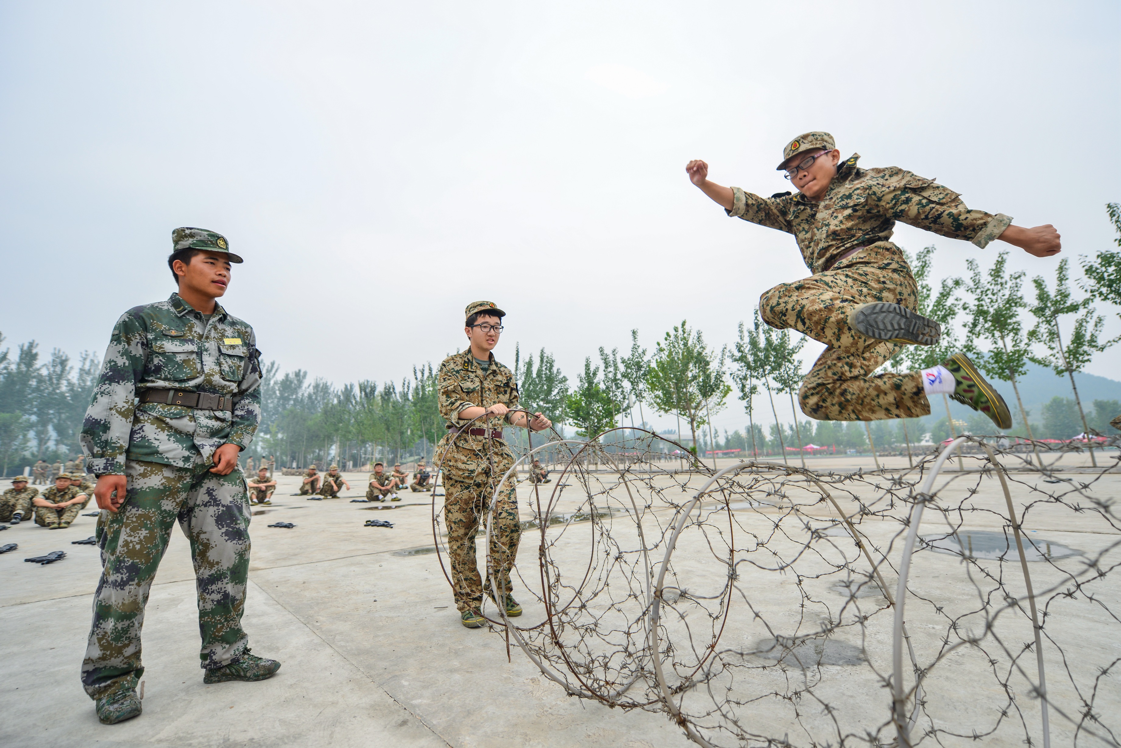 在训练场上,我们顶着烈日对一个个项目进行反复练习,酸疼的胳膊、麻木的小腿,被打肿的手背以及身体的种种不适,让我好几次想要放弃。可是看着教官额头上的汗水,和老师们照顾伤病员的忙碌身影,我又咬牙坚持了下来。看着训练场上那么多人都能坚持下来,我又凭什么放弃呢?