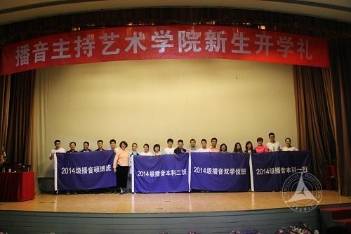 随后,学院领导分别向14级各班班授予了班旗。授旗仪式后,全体新生在彭坤的带领下庄严宣誓,“忠诚党的新闻事业,肩负党的喉舌重任。坚决维护国家利益,全力弘扬民族精神。刻苦锤炼语言功力,生动传播时代强音。催生有声语言典范,承担继往开来使命。立德敬业博学竞先。我们时刻准备着!”播音主持艺术学院2014级新生入学礼在庄严洪亮的宣誓声中落下了帷幕。