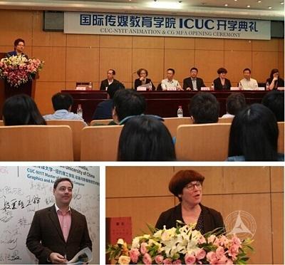 美国纽约理工学院副校长Harriet Arnone、艺术系教授Geoffrey Bell一行6人,以及研究生院副院长张鸿声、艺术学部党委书记兼副学部长彭文祥、动画与数字艺术学院副院长张歌东、王雷等参加典礼。传媒高等教育国际联盟秘书长、国际传媒教育学院常务副院长罗青主持典礼。Geoffrey Bell教授等将作为学院常驻国际教学团队,与中方教学团队共同开发符合国际前沿标准与中国实际需求、个性化和精英化的“国际传媒精英人才培养计划”。