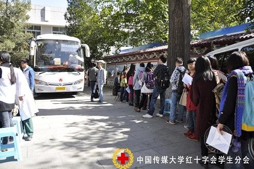 10月15日,我校红十字会学生分会配合北京市通州区中心血站,在计算机中心门口开展了新学年第一次献血车进校园无偿献血活动。本次共有90名同学积极参与献血,其中10人献血400毫升,80人献血200毫升,献血总量达到20000毫升。献血的同学们来自我校各个学部、中心以及直属学院,以2014级新同学为主,遍布各个层次和年级。