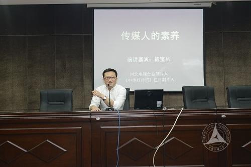 10月11日下午,招生办邀请河北电视台总制片人、河北卫视《中华好诗词》栏目制片人、我校1994级文艺编导专业校友杨宝昆,为石家庄二中学生作题为“传媒人的素养”的精彩演讲,300多名学生现场聆听。