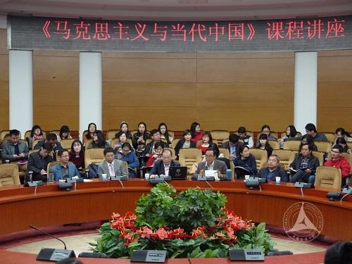 10月21日下午,新华社对外新闻编辑部主任、国务院政府津贴专家、中国传媒大学政治传播研究所特聘研究员严文斌莅临我校,在图书馆报告厅为2014级全体博士生作了题为“国际话语权与中国国际传播对策”的学术讲座。荆学民教授和刘东建副教授主持讲座,新闻学院院长刘昶作点评。该讲座是由荆学民教授等主持的秋季学期博士生课程《马克思主义与当代中国》的第四讲。