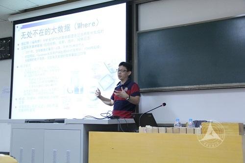 讲座的主体部分主要分三部分进行介绍。首先,李建强教授为同学们介绍了“大数据”这一新兴概念,并由其无处不在、价值巨大、面临挑战等特性,配以生活中浅显易懂的例子使同学们更加深入地进行理解。接着,李建强教授使用hadoop的例子配以流程图的形式,为大家讲解了大数据的应用与分析技术。最后,李建强教授由当今时代出发,从企业的角度总结了大数据的热点及发展趋势。