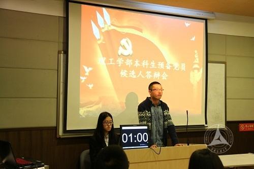 10月31日下午,理工学部开展了本年度下半年本科生预备党员候选人答辩会,候选人从理工学部二级党校毕业并被各党支部确定为考察对象的同学中选出。答辩会旨在挑选出入党动机端正、对党忠诚、听党指挥、思想觉悟高的入党积极分子,作为本年度下半年的发展对象。理工学部分团委副书记王曼霖出席答辩会。理工学部9名本科生党支部书记和36名来自2013、2014级团支书到场观看并参与评分。