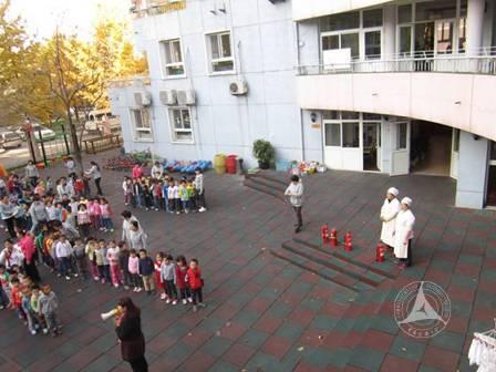 为加强幼儿们的消防安全防范意识,提高师生应对火灾危险的应急处理能力。11月6日,幼儿园举行了全园的应急疏散演练活动。此次演练重点是熟悉并掌握火灾逃生路线。