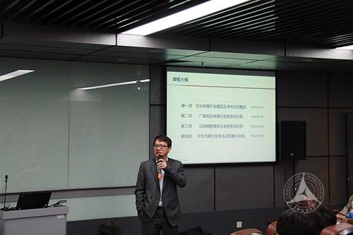 在课程中,陈杭总经理对“文化传媒产业概览及资本运营概况”、“广播电影电视行业的资本运营”两部分内容进行了讲解。课程结合迪斯尼、培生、华谊兄弟、蓝色光标、乐视等国内外文化传媒企业的并购案例,对国内外文化传媒业的并购动因、历史进行了深入分析,对中国文化传媒业面临的“四大机遇”、“五大挑战”的总结具有前瞻意识和鲜明的个人观点。讲座视野宏阔,数据翔实,内容丰富,师生互动热烈。陈杭总经理还结合课程,就同学们关心的问题和同学们进行了探讨。