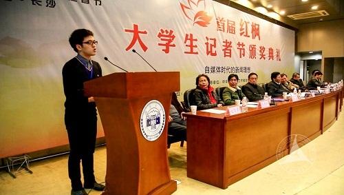 (通讯员 禹学军)12月12日至14日,由湖南大学主办的首届红枫大学生记者节在湖南长沙举行。在本届记者节上,我校参赛同学共斩获包括十佳校园先锋记者、视频类一等奖、文字类二等奖、优秀奖等在内的六项大奖。我校中传电视台获得优秀组织奖称号,并作为校园媒体代表之一受邀参加记者节各项活动。中传电视台副台长宣宝剑、新闻部主任刘谦以及我校获奖学生代表出席本次活动。