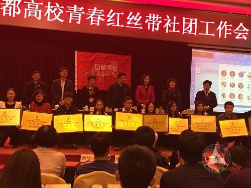 12月28日,首都高校青春红丝带社团年终工作会议在海淀区召开。北京市卫生计生委正局级巡视员郭积勇、市教委宣传处长宋玉珍、团市委权益部长李海娟、市红十字会志愿者部调研员李胜华、首都青春红丝带社团领导小组副主任许建农以及来自首都各高校的青春红丝带社团负责老师出席会议。我校红十字会学生分会、青春红丝带社团指导老师温沁,红十字会学生分会会长朱丹妮等四名获奖学生参加会议。