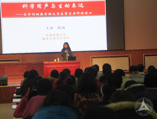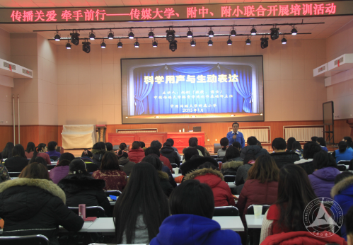 1月8日下午,我校关工委与传媒附中、传媒附小共同举办了“传播关爱牵手前行”培训活动。此次活动是关工委应附中、附小之邀,聘请我校播音主持艺术学院创作基础部副主任赵俐为附中、附小的老师们作了题为“科学用声与生动表达”的讲座。