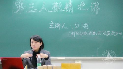 (通讯员 唐贤荣 摄影 李双雪)3月25日晚上,文法学部政法学院法律系邀请朝阳区人民法院南磨房法庭副庭长白小莉法官作了题为“第三人撤销之诉”的专题讲座。讲座由法律系副主任郑宁主持。法律系副教授匡敦校、刘文杰参加讲座。