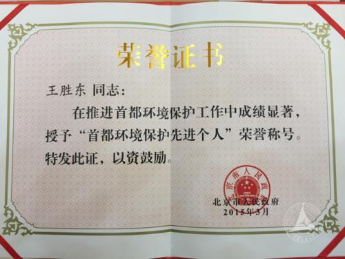 3月30日,北京市环境保护委员会召开扩大会议暨“首都环境保护奖”表彰大会,集中表彰过去三年为首都环境保护事业作出重大贡献和突出业绩的先进集体和先进个人。经济与管理学院毕业生(2002级行政管理专业)王胜东被北京市人民政府授予“首都环境保护先进个人”荣誉称号。