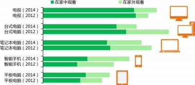 中国城市用户每周通过各种设备用于观看视频的平均时长(数据来源:爱立信消费者研究室《2014电视与媒体消费趋势报告》)(制图张海宁)