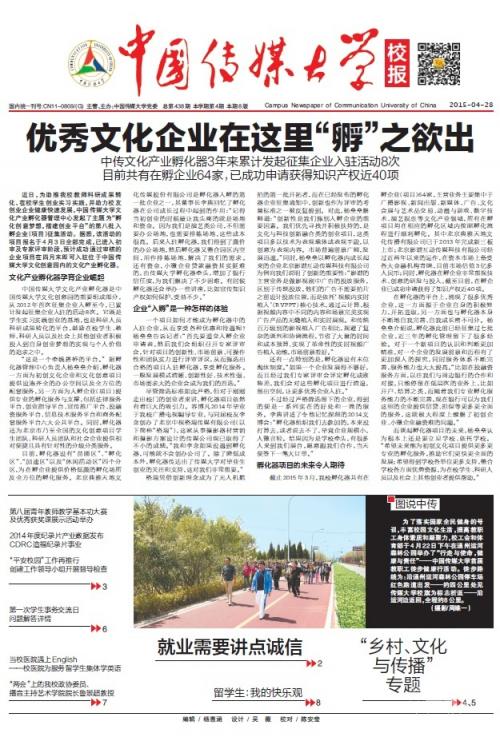 中国传媒大学校报是拥有国内统一刊号,由中国传媒大学党委主管主办的报纸。因改扩版及新媒体平台建设需要,现面向大一在校生征集新一批记者。各专业均可报名,校报会专门进行培训和辅导。进入记者团后,发表文章按字数记稿费,同时可参与校报提供的实践活动并获得相应学分。