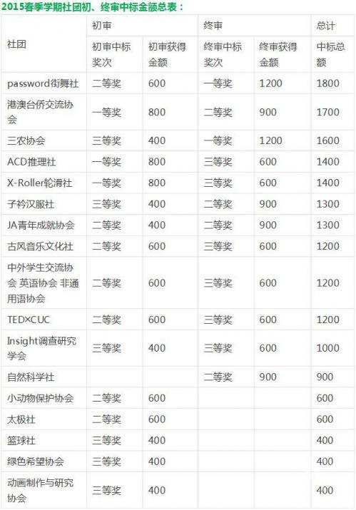 2015年6月12日晚六点,中国传媒大学2015年春季学期专项基金终审答辩会在48教A907顺利举行。本次答辩共评出14个社团专项基金终审中标社团(其中中外学生交流协会、英语协会、非通用语协会合办活动、共同申请)
