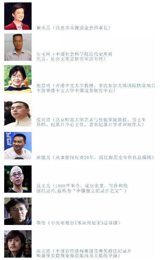 【一群】业内顶级的专家指导——他们是口述历史和纪录片领域真正的大咖,参与评审、授课、沙龙。他们全程陪伴“家·春秋”,是你口述历史的同路人: