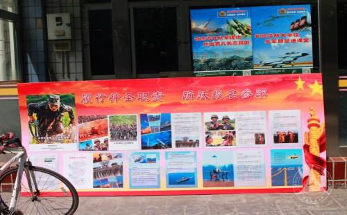 2014年,武装部在学校党委的领导下,按照上级的工作要求,主动协调校内各方面力量,广泛地开展了大学生参军入伍的政策宣传和参军动员工作。期间,还积极推送出多个参军同学在军营立功受奖的先进事迹。征兵工作得到了同学们的积极响应,有意参军同学统一通过全国征兵网报名。经体检、复检、上级抽检和政治考核等工作,最终,李磊等12名同学(其中女生2名)被朝阳区人民政府批准入伍。参军同学中有三分之二为本科生,高学历兵员创历史新高。