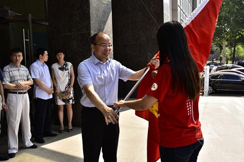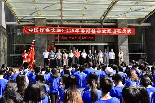 (通讯员 唐晓敏 刘子钰 摄影 高赫 马一蒲)7月13日上午,我校2015年暑期社会实践出征仪式在48号教学楼前举行。校党委副书记刘守训出席并授社会实践总团旗。党委宣传部、保卫处、学生工作处、研究生院、教务处、财务处、工会、校医院、后勤管理处、社会服务办公室、就业指导中心及校团委等职能部门领导参加仪式并授旗。