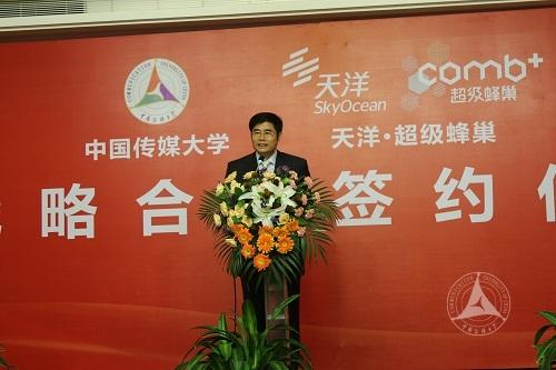 陈文申书记在致辞中表示,此次合作是天洋集团对教育事业的一份深厚情义,是对中国传媒大学在人才培养、教师队伍建设、国际合作与交流和文化实践等方面给予的巨大支持。这一善举,具有重要的时代意义,它展现的不仅是一个成功企业对教育事业的钟爱,更是一种社会的责任,是一种难能可贵的境界。