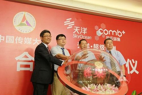 (新闻中心记者 储钰琦)7月21日上午,中国传媒大学与天洋·超级蜂巢战略合作签约仪式在中传国际交流中心三层M1会议室举行。天洋控股集团执行董事杨宏光,北京天洋蜂巢科技有限公司朱灵总裁,我校党委书记陈文申、校长苏志武、副校长胡正荣、吕志胜、廖祥忠出席仪式。我校党委副书记刘守训主持仪式。