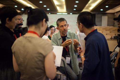 7月31日举办的创新实践工作坊汇聚了空前强大的教师团队——德国设计思维学院院长乌里•温伯格教授、美国斯坦福设计思维学院迈克•贝瑞教授、中国设计思维创新中心主任税琳琳、SAP中国首席创新架构师鲁百年博士、西门子中国研究院技术经理李志昊先生和奥迪中国创新管理概念设计师 Petromil Petkov先生等分别担任工作坊的主持人和各团队的教练,工作坊的参与者也分别来自华为、平安保险、平安科技、日立中国等商业公司,北京大学、南开大学、北京交通大学、北京理工大学、北京邮电大学、汕头大学、湖北工业大学等高等院校,以及友成基金会创业咖啡、光华慈善基金会、爱佑慈善基金会、嫣然天使基金、北京公益发展促进会、芯世界创新中心等社会公益机构。
