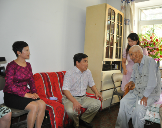 (通讯员 赵永锋 摄影 杨硕)8月28日,是我校离休干部张志老师的百岁寿辰,我校校长苏志武、党委副书记赵晖,在离退休人员管理处处长姜鹏、书记贡爱强、副处长赵永锋等同志的陪同下,带着寿字、蛋糕、寿桃、鲜花等寿礼,前往张志老师家中为老人祝寿庆生。