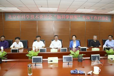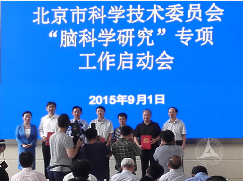 (通讯员 伏文龙)9月1日,北京市科委召开“脑科学研究”专项工作启动会,发布了《北京市科学技术委员会“脑科学研究”专项实施方案》(京科发〔2015〕416号)。北京市副市长隋振江出席并发表讲话,工信部副部长怀进鹏院士、北京市科委主任闫傲霜、党组书记呼文亮等领导出席会议。市发展改革委、市经济信息化委、市财政局、市卫生计生委、市审计局、市食品药品监管局、市统计局、中关村管委会等部门,北京大学、清华大学、中国科学院、中国传媒大学、北京师范大学、首都医科大学等高校等科研院所,京东尚科、小米等企业共计100余人参加会议。我校脑科学与智能媒体研究院院长曹立宏教授应邀出席会议,并获聘北京市“脑科学研究”专项指导组专家。