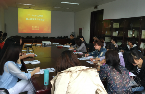 (通讯员 杨璇)9月17日上午9:00,2015-2016学年勤工助学工作布置会在学生工作处会议室举行。学生工作处副处长李萍主持会议,全校40余个勤工助学用工单位的工作负责人参会。
