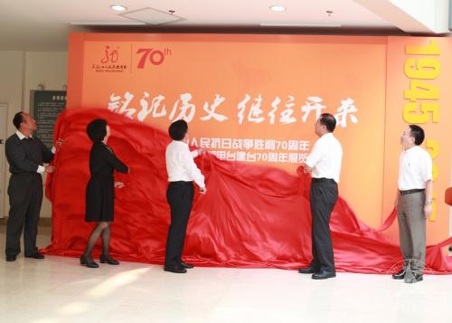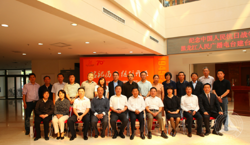 开展仪式上,中广联合会副会长杨波、秘书长张莉,中国传媒大学副校长袁军,黑龙江广播电视台副台长李皎、北京文物局博物馆处处长哈俊等领导共同为“铭记历史继往开来—纪念中国人民抗日战争胜利70周年·黑龙江人民广播电台建台70周年展览”揭幕,为期3个月展览正式开展。