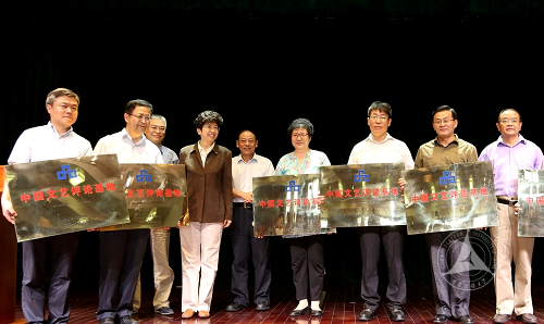 根据中国文艺评论家协会、中国文联文艺评论中心《中国文艺评论基地管理办法(试行)》的规定,今年4月,中国文联启动首批“中国文艺评论基地”申报工作。经过严格的资格初审、复审等程序,我校因艺术学五个一级学科的综合优势和传媒艺术学的鲜明特色而成为全国第一批“中国文艺评论基地”建设单位,艺术学部为依托单位。廖祥忠副校长代表学校出席授牌仪式。参加授牌仪式的还有“基地”负责人、艺术学部党委书记兼副学部长彭文祥,以及“基地”专家代表艺术学部音乐与录音学院副院长赵志安、艺术研究院副院长张金尧、戏剧影视学院教授戴清等。