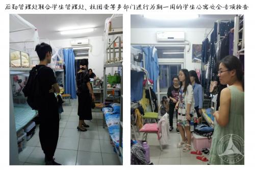 同时,开学伊始,“双节”临近,第二届党代会召开在即,为了保证学生公寓安全,消除安全隐患,落实贯彻文件精神,更好地规范学生公寓行为,9月23日,后勤管理处联合学生管理处、校团委等多部门进行为期一周的学生公寓安全专项检查,由后勤管理处、公寓管理员、辅导员、学生会干部、楼层长等人员组成检查小组,对全校所有公寓楼进行逐一检查,提醒学生遵守修订后的《中国传媒大学学生违纪处分管理规定》,规范公寓行为。