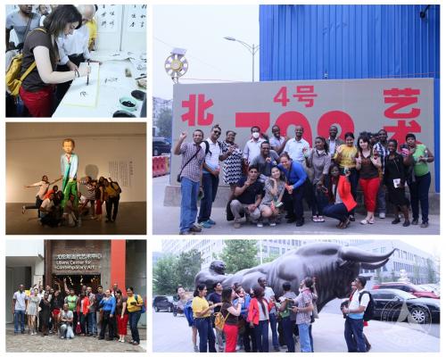 在798艺术区,项目学员参观了糅合历史与现代、东方与西方、世界与民族等主题的一系列艺术展览。参观中,他们了解了不同历史时期中国当代文化和艺术,尤其是先锋的艺术形式和发展潮流有了初步认识。在一家中国传统艺术画廊里,学员们还向画廊中的艺术家请教中国文字的艺术形态,并纷纷体验如何使用毛笔书写中国文字。