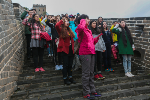 司马台长城接力环节,针对艺术学部学生的专业特点,将“唱红色经典革命歌曲”、“社会主义价值观提问”及“党的基础知识问答环节”与勇登长城相结合,使得活动本身充满了趣味性、知识性和教育性。