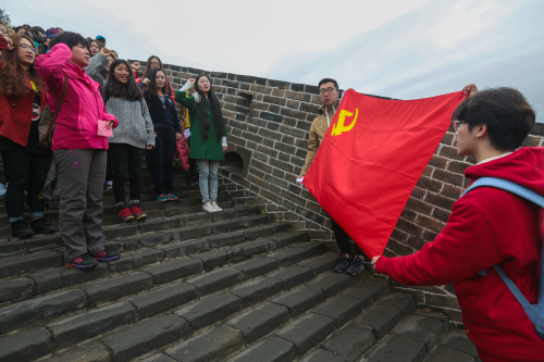 活动由重温入党誓词、司马台长城接力和古北水镇参观采风等环节组成。长城烽火台处,叶菁副书记带领全体党员师生,重温入党誓词,回顾入党初衷。历经战火硝烟的司马台长城不仅记录着中华民族可歌可泣、不屈不挠的民族精神,也聆听了艺术学部党员师生的铮铮誓言。