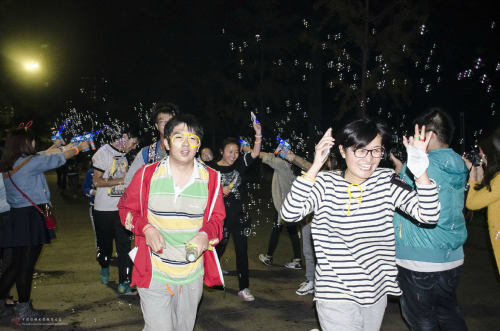 经过前期大力的宣传,本次活动多达700余人报名,达到了举办此类活动以来的最高峰。晚六点,报名的同学们陆续到达孔子广场签到,并以1元公益的形式购取荧光道具,领取抽奖号码。对于意料之外的雾霾天气,学生会工作人员贴心地为同学们准备了口罩,并提出“冲出雾霾”的响亮口号。在夜跑活动正式开跑前,PASSWORD街舞社带来的精彩舞蹈表演炒热了全场的气氛,阿卡贝拉清唱社送上的人声合唱带来了独特的听觉盛宴。接着由“KEEP”专业健身教练和八位夜跑达人一起带领同学们跟着节奏做热身运动,为接下来的长跑做好预热。