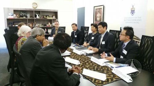 12日,代表团一行访问了位于约翰内斯堡的金山大学,陈文申书记与金山大学校长亚当·哈比布、副校长扎布伦·维拉卡兹等进行了会谈。亚当·哈比布校长对我校代表团的到访表示欢迎,他表示,作为非洲排名前五位的金山大学,近年来特别重视与发展中国家高校开展交流,以此积极推动教育领域的南南合作,两校间开展的学者交流及正在联合推动的“中非报道项目”(China Africa Reporting Project)具有积极意义,希望进一步加强与我校在教学与科研领域的合作。会谈中,陈文申书记表示,中非合作论坛峰会将于12月初在约翰内斯堡举办,此次我校对金山大学的访问具有特别意义,双方对新闻传播领域在各自国家的领军地位及对中非传媒研究与教育的共同兴趣,是两校下一步开展更具创新意义合作项目的良好基础,我校希望与金山大学在中非合作论坛框架下,开创中国与南非高校合作的新模式。会谈中,双方还就两校下一步拟开展的合作项目交换了意见。陈文申书记与亚当·哈比布校长分别代表两校签署了合作协议。我校非洲传媒研究中心主任张艳秋与金山大学文学、语言与传媒学院院长丽比·曼特耶斯,就双方2015年联合举办的“中非报道项目”签署了合作协议。会谈之前,我校新闻传播学部学部长高晓虹、党委副书记张艳秋与曼特耶斯院长等举行了会谈,双方就联合研究、学者互访、双硕士培养、在职记者培训等合作项目交换了意见并达成合作意向。