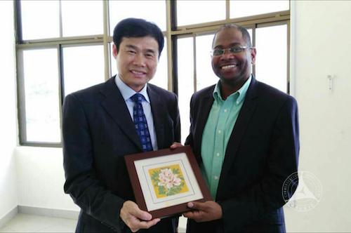 陈文申书记与桑给巴尔国立大学校长伊德里斯·莱合影