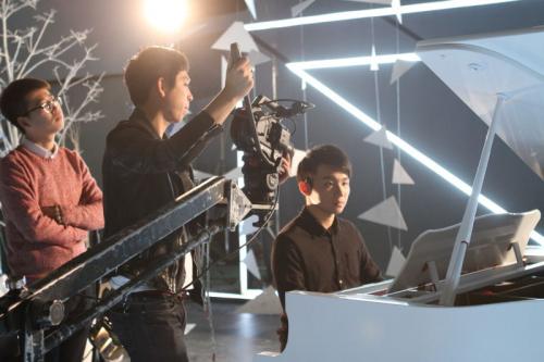 MV摄制组由新闻传播学部各级本科生组成。团队在学部专业老师的指导下完成了MV的剧情策划、歌词分镜书写、制片工作及选棚布景工作。同时,在本次实践中,学部还邀请了专业的灯光师、摄影师及置景团队指导学生创作。在一天的拍摄中,学生与业界专业人士交流合作,向他们学习经验,并通过实操锻炼个人的专业技能。
