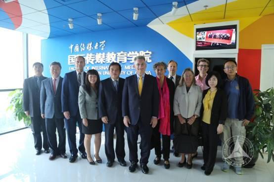 苏志武校长、廖祥忠副校长陪同代表团参观了国际传媒教育学院,与正在进行英文授课的外教团队和同学进行了亲切交流,深入了解了学生接受国际化教学的情况,并参观了系列教学实验设施。