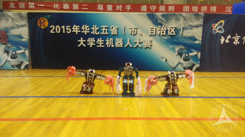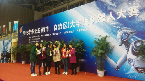 华北五省(市、自治区)大学生机器人大赛由北京市教委主办,在北京大学生体育馆举行。大赛共有全国66所高校的672支参赛队伍,参赛师生人数多达1700余人。经过激烈角逐,我校代表队在强手如林的比赛中不负众望,荣获一等奖、二等奖、三等奖各一项的优秀成绩,获奖率达100%。其中,由教师陈学惠、迟绍翠指导,学生牛炎鑫、闫宁宁、张劲松编排的机器人团体舞构思新颖,表现优异,赢得现场评委老师们的一致好评,在70多支机器人团体舞参赛队伍中脱颖而出,最终总成绩排名第一,斩获舞蹈机器人组团体赛一等奖,陈学惠、迟绍翠老师被评为优秀指导教师。这是我校首次获此殊荣。
