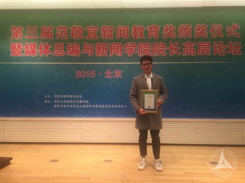 (通讯员 赵晨 摄影 李桢宇)11月19日,第三届范敬宜新闻教育奖颁奖仪式在京举行,我校新闻传播学部2014级国际新闻传播硕士班研究生卢烨获得“新闻学子奖”。这是新闻传播学部学生第二次获得范敬宜新闻奖。