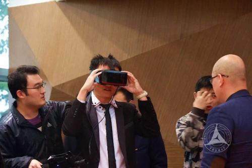 讲座结束后,现场安排了虚拟现实技术体验环节,到场师生纷纷参与,通过佩戴特定的硬件设备,感受更加丰富的空间情景内容,并与虚拟现实亲密互动,感受高科技应用带来的乐趣。