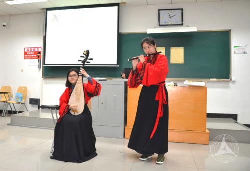 冰雪期未远,蕉絺意尚青。窗外绵绵的冬雨无法掩盖室内热闹的氛围。在双方老师的引导下,荷兰语班同学和荷兰同学交叉而坐,很快便熟悉起来。班长刘勇亮主持了见面会的开始,随后中荷两国同学分别以幻灯片的形式向对方介绍了自己的国家。荷兰同学还分享了荷兰经典的糖果。作为东道主,荷兰语班集体演唱荷兰歌曲《Energie》,赢得了荷兰学生代表团的激烈喝彩,大家演出了精心准备的中国色彩浓厚的节目:太极拳、竹笛和琵琶合奏《欢沁》、中国书法表演等。精彩的节目充分展示了中国传统文化的魅力。节目结束后,中荷同学一同分享了稻香村的糕点,我方赠送了荷兰友方钥匙扣以展现对荷兰同学的欢迎。