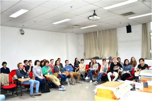 (通讯员 刘敏 摄影 张羽博)11月19日,在北京蒙蒙的冬雨中,外国语学院2015级荷兰语班在经过了忙碌而充分的准备后迎来了Ichthus College荷兰学生代表团,48教A801教室瞬间因为荷兰同学到来而热闹起来。