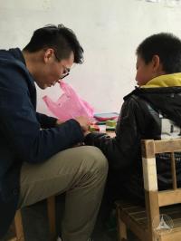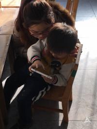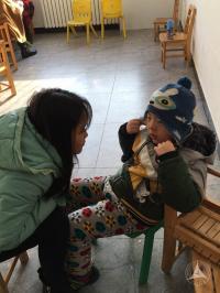 志愿者们在这些孩子身上都发现了一个写着他们性格特点的小牌子,并且在老师们的指导下尝试着与他们沟通,尝试着根据每一个孩子的特点来照顾他们。孩子们起初对这些陌生的志愿者表现出了很强的抗拒情绪,烦燥、紧张、焦虑、在教室里乱跑乱闹,大喊大叫,最为严重的甚至想要开门冲出去。志愿者们一度有些不知所措,在研究所老师们的帮助与引导下,渐渐发现只需要通过简单温情的聊天、细心的照顾,便可以很快与孩子建立起一种信任,让孩子接受他们。于是,整个下午的大多数时间,孩子们的脸上都挂着天真的笑,与志愿者们一起愉快地看书、写字、讲故事、做游戏。