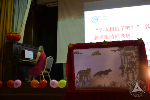 此次期末大联欢以“中国传统文化展示”为主题,以“歌曲、舞蹈、诗朗诵、器乐演奏”等为展示形式,其中孔子学院三级水平班的光影戏表演“狐假虎威”,将皮影与中国传统故事成功结合,让人耳目一新;军校一级班学生一首“月亮代表我的心”令全场深受感染;孔院老师的书法、中国器乐结合的表演也受到了大家的好评;一级水平班学生北少林功夫的精彩表演为此次表演画上了圆满的句号。表演结束,还进行了“书画比赛”和“学期最优秀学生”颁奖典礼,在全体师生欢乐的“小苹果”歌舞表演后,此次期末大联欢活动圆满落幕。