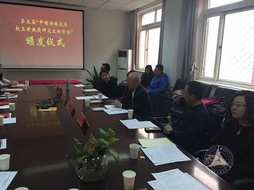 (通讯员 郑丹琪 摄影 刘靖轩)12月9日,第五届中国传媒大学“赵玉明教授研究生助学金”颁奖仪式在研究生院举行。该项目发起人及资助人赵玉明教授、研究生院领导及相关工作人员、受资助研究生的导师代表、培养单位相关工作负责人代表及评审委员代表出席仪式,赵玉明教授现场向今年受资助的10名研究生颁发了获奖证书和纪念品。
