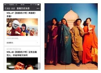 左图:2013媒调班班级公众号“我爱统计学”版块