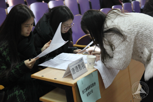 (通讯员 瞿诗琦)12月11日上午,浙江省横店影视文化产业实验区管理委员会在我校44号楼406教室举办2016届毕业生校园招聘会。此次招聘共有华谊兄弟、天娱传媒、横店影视制作等16家行业顶尖影视传媒公司参加,招聘涉及责编、发行、业务助理、影视制片、平面设计师、人力资源管理等岗位。