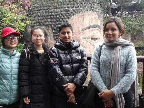 尼泊尔震区百名青少年代表团由尼泊尔内政部主管官员布达索奇先生领队,团员来自尼泊尔震区各地。在为期一周的访问中,尼泊尔语班三名同学担任访问团随行翻译,带领尼泊尔青年体验中国传统文化及现代教育体系,并游览参观了成都、乐山等地。其中,骆金影同学担任尼方团长翻译及中方领导发言翻译,张昊同学担任户外拓展及心理疏导活动翻译,黄冰洁同学担任欢迎晚宴尼语主持及树德中学访问行程翻译。
